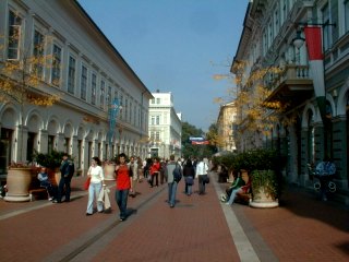 der Fußgängerzone von Szeged, über die Käräsz utca in die Richtung Klauzäl ter